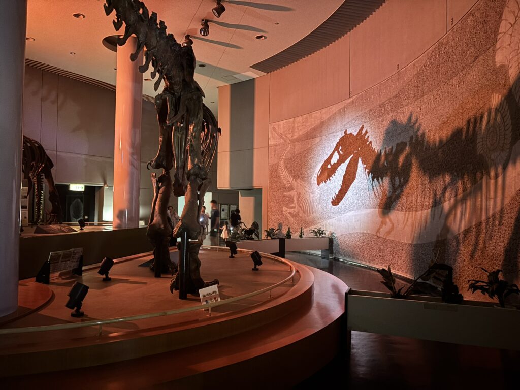自然史博物館の夜バージョンは、中の電気はオフで、懐中電灯を渡されそれで、見学するスタイルで、恐竜の骨を見るという斬新な見学で面白かったです。