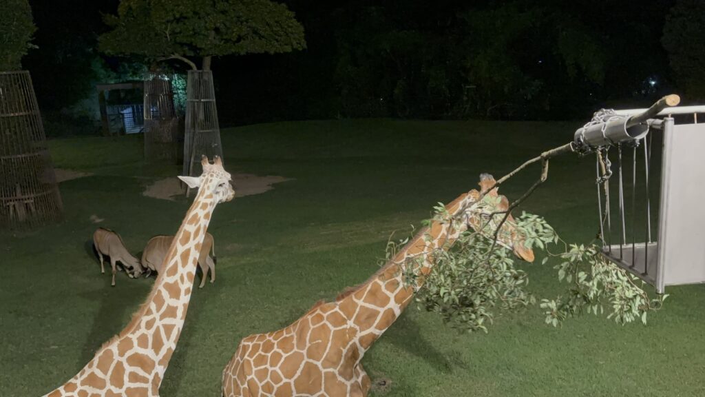 「小さい子にはまだ早いかな?」と思っていましたが、実際には大人以上に子どもたちが楽しんでいました。昼間とは違う動物の姿に出会えたり、ライトアップで特別な雰囲気を味わえたり、まさに夏の思い出にぴったり。2歳と4歳でも十分楽しめるナイトZOO体験でした。子ども連れの方には「早めの時間帯に入園して、子どもが眠くなる前にしっかり見て回る」のがおすすめです。ぜひ家族で夜の動物園を体験してみてください!